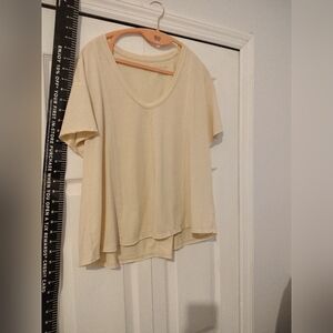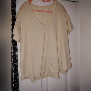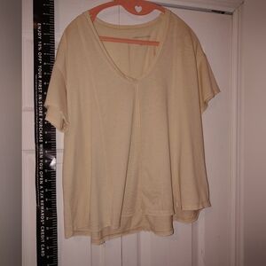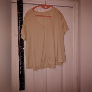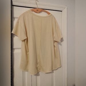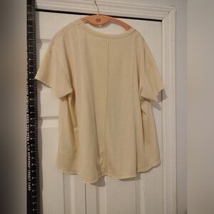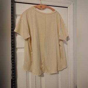 Elevate your wardrobe with this elegant cream V-neck top. Perfect for any occasion, this top offers both comfort and style.