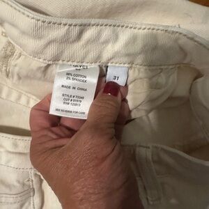 Elevate your style with these chic cream jeans. Perfect for any occasion, these jeans offer both comfort and elegance. Vevert size 31