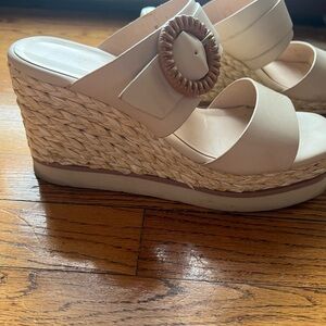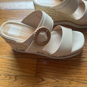 Dolce Vita cream wedge sandals. Step into style with these elegant sandals. Perfect for any occasion, these shoes offer both comfort and sophistication.