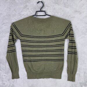 Womens Cremieux Green & Black Striped Sweater Crewneck Long Sleeve Size XS