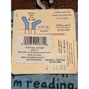 Womens Crew Socks "F#@k Off Im Reading" Blue Q Size 5-10 Cotton/Nylon Crew Heigh