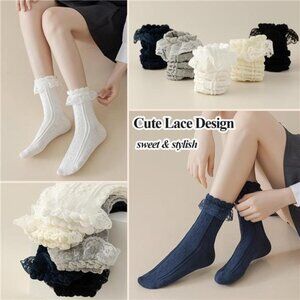Womens Crew Socks Lace Ruffle Frilly Cotton Cute Princess Ankle Dress