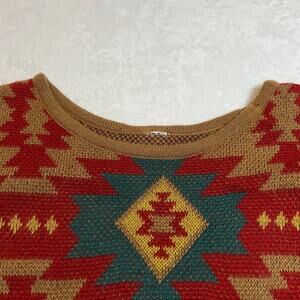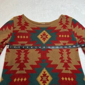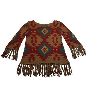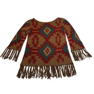 Women's Crewneck Aztec Southwestern Print Sweater w/ Fringe Size Small Colorful