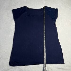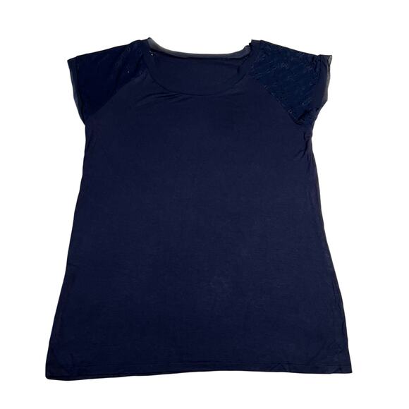 Women's Crewneck Eyelet Sleeve Blouse Size Small Mesh Trim Minimalist Casual