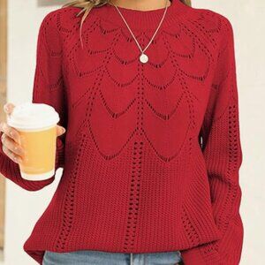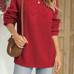 Women's Crewneck Long Knit Sweater, Casual Loose Pullover. Hem, cuffs and neck are pleated, double layer knit fabric. 80% Cotton, 20% Nylon. Like new condition.