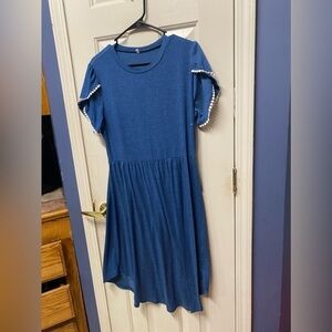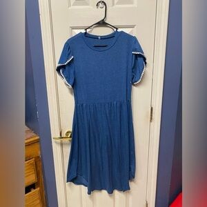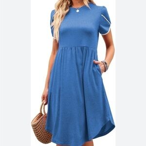 Women's Crewneck Petal Short Sleeve T Shirt Dress Casual Solid Swing dress L