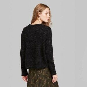 This Women's Crewneck Tinsel Sweater in Medium is a fashionable addition to any wardrobe. Made in a classic black color, it's perfect for festive occasions or everyday wear.