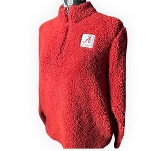 alabama sweatshirt, sherpa pullover, college football hoodie, crimson tide gear, warm quarter-zip, fuzzy pullover, cozy game day outfit, team spirit wear, soft fleece sweatshirt, fitted hoodie