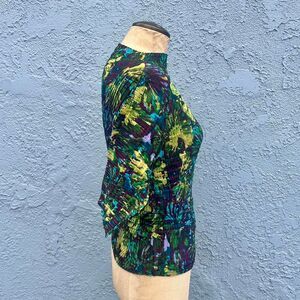 Green and blue floral print pleated blouse with 3/4 sleeves and mock neck #boho #festival #y2k