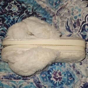 Womens Cozy and fluffy white slippers. Perfect for lounging. Size 8 Cris-Cross style