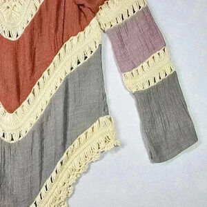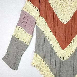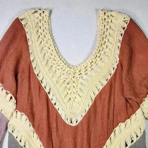 Women's Crochet Crinkle Fabric V-Neck Front and Back Tunic Hippie BOHO Style Coverup Earthy Delicate