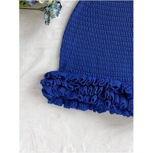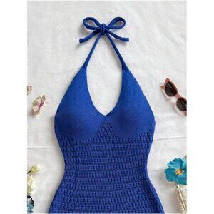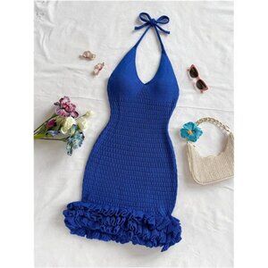 Women's Crochet Halter Bubble Mini Dress Royal Blue