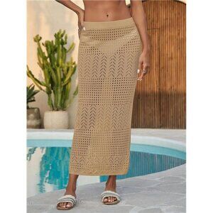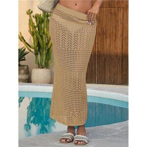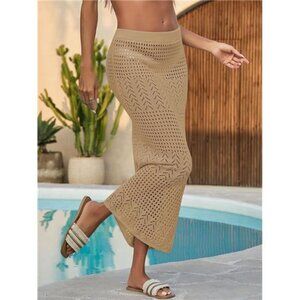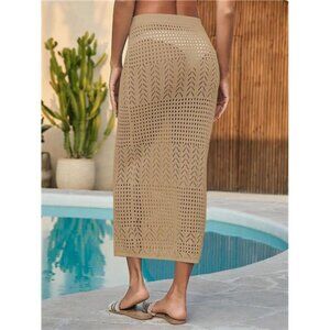 Womens Crochet Skirt Cover Up High Waist Sheer Mesh Khaki