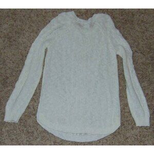 Womens Crochet Sweater Large White Knit Round Neck Long Sleeve SO