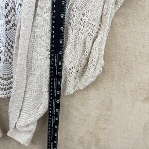 Womens Crochet Top Open Knit Lace Cardigan Beige Cream Boho Cottage Slouchy Sz S