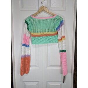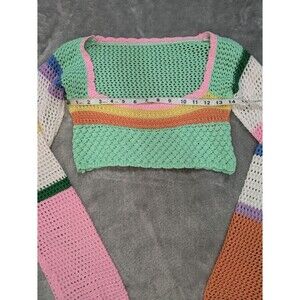 Women's Crocheted Long Sleeve Crop Top - Size Small
