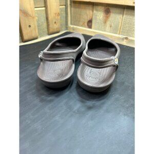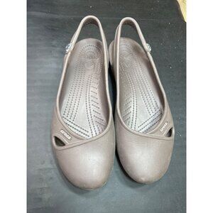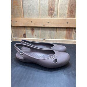 Womens Crocs Brown Flats Slingback Sandals With Crystal Button Detail Size 8