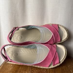 Women’s Crocs Pink A-Leigh Linen Slingback Espadrille Wedge Sandals Size 7