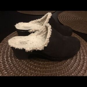 Women's Crocs Sarah Mules Clogs Shoes Size W7 Brown Suede Faux Fur Lined G5