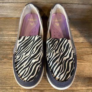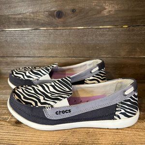Womens Crocs Walu Black Zebra Print Comfort Casual Slip On Loafers Size 6 M GUC