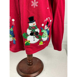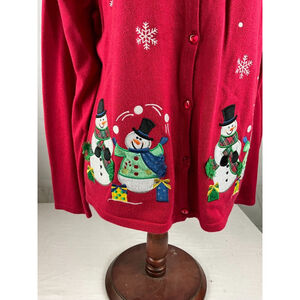 Women’s Croft & Barrow Holiday Christmas Cardigan Sweater Petite Size XL Red EUC