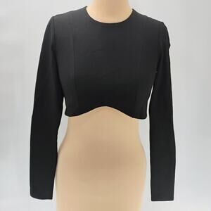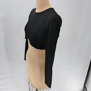 Womens Cropped Blouse Small Black Long Sleeve Cut Out Streetwear open back