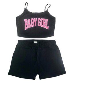 Experience ultimate comfort and style with our Women's Cami Sleep Set. Made from soft, breathable fabric, this set includes a relaxed-fit cropped-cami and matching shorts, perfect for a restful night's sleep or lounging around the house. The spaghetti straps ensure a personalized fit, while the lightweight material keeps you cool and cozy throughout the night. Whether you're winding down after a long day or enjoying a lazy weekend at home, this set brings a mixture of feminine, flirty, youthful style with a cozy mix of comfort, for the perfect at-home look. Bring out your youthful side and lounge in style in this cute and comfy set!