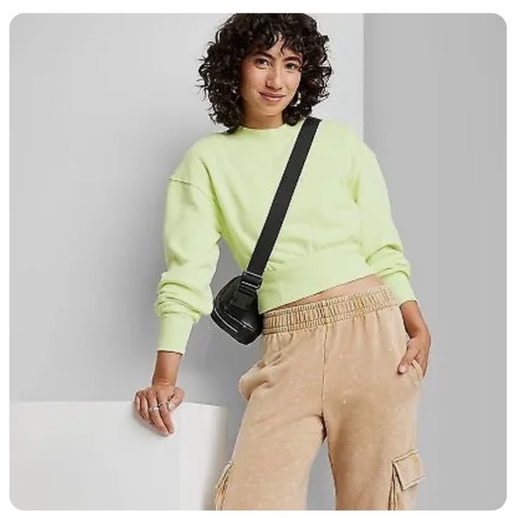 Women's Cropped Crewneck Pullover Sweatshirt - Wild Fable lemon yellow
