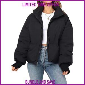 Brand new, no flaws, and ready to wear — this cropped winter puffer jacket delivers cozy warmth with a stylish, modern silhouette perfect for commutes, casual outings, or layered winter looks. The quilted design is lightweight, flattering, and built to last. ⭐️ Features Style: Cropped puffer jacket with high neck Fit: Intentional oversized cropped cut, boxy silhouette Fabric: Lightweight quilted insulation, contains recycled materials Perfect for winter wear, streetwear styling, and versatile layering 💯 Condition: Brand New 🎁 Bundle & Save ✨ Smoke-free, pet-free home. B0FK4Z2X24