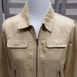 Long-sleeve utility jacket from Wild Fable™ made of 100% cotton in a solid hue. Sports a collared front and full-length zipper fastening, along with ribbed trim at the wrists and hemline. Designed with flapped chest pockets and zip pockets on the sides. Cropped length with a classic fit completes the look.