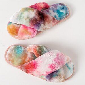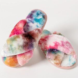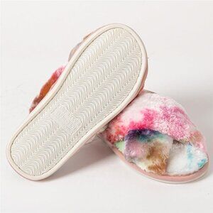 Women's Cross Band Fuzzy Slippers Fluffy Open Toe House Slippers