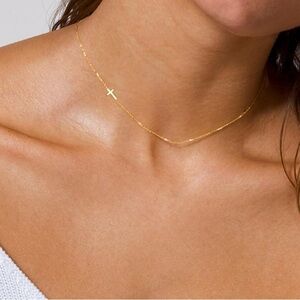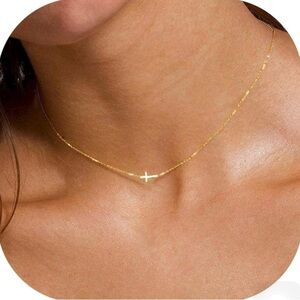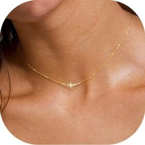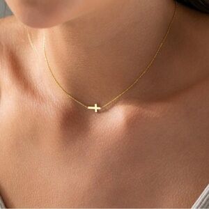 Women’s Cross Necklace Tiny Sideways 14K Gold Plated for Women Jewelry C…