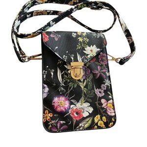 Womens Crossbody Bag Multicolor Boho Floral Snap Vegan Leather