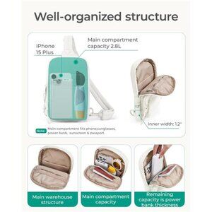 *๐๐ง๐ญ๐๐ซ๐ข๐จ๐ซ ๐๐๐ฉ๐๐๐ข๐ญ๐ฒ ๐๐จ๐ญ๐: Sling bag padded design (0.58" thick) with 1.2" interior width - fits slim items like power banks when side pockets are full, not for bulky objects