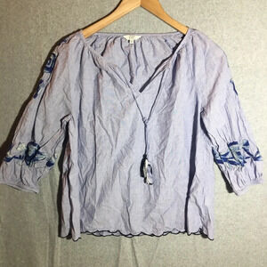Womens Crown & Ivy Blouse Boho Beachy Coastal Heavy Embroidery Sleeves Spring