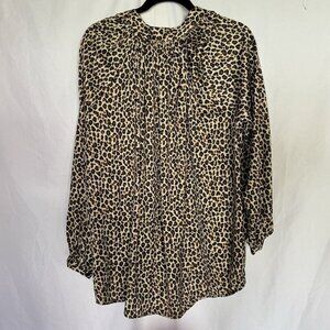 Women's Crown Ivy Curvy Blouse Brown Beige Leopard Tassel Boho Flowy Popover L
