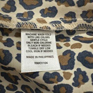 Add a touch of bohemian to your wardrobe with this Crown & Ivy blouse. The brown and beige leopard pattern is accented with tasseled details for a playful twist. The flowy, pop-over style is perfect for a casual day out or a travel adventure.