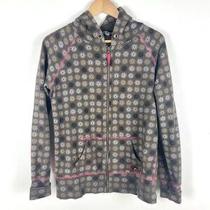 Womens Cruel Girl Y2K Zip Hoodie sz L Floral Embroidered Logo Pins Pink Contrast