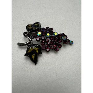 Exquisite Design: Elevate your style with this meticulously crafted brooch featuring a stunning arrangement of crystal grapes in shades of dark green and purple. Size: 3" long and 2 1/2" across.