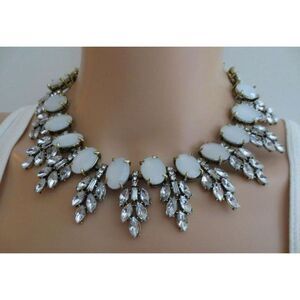 Women's Crystal Wreath Leaves Pendant Statement Bib Necklace Gray