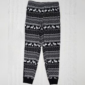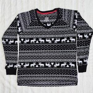 Womens Cuddl Duds Fleecewear 2 pc Set Cozy Soft Winter Spring Moose Pattern Loungewear Black & White SMALL