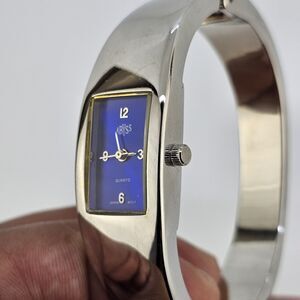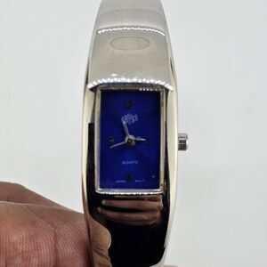Women's Cuff Bangle Watch 18MM Blue Dial Gray Bracelet Band 5.5" New Battery
