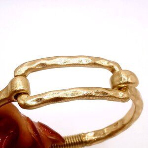 This handcrafted hammered gold-tone cuff bracelet exudes elegance and unique character. The textured design and hook clasp provide both functionality and style, while the coil accent adds a touch of sophistication. A timeless accessory to enhance personal style.
