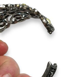 Womens Cuff Bracelet Jeweled Hinged Rhinestone Silver Green Fashion Statement