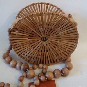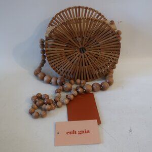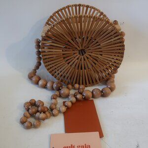 Womens Cult Gaia Luna Handmade Artisan Bamboo Cut Out Beaded Crossbody Handbag