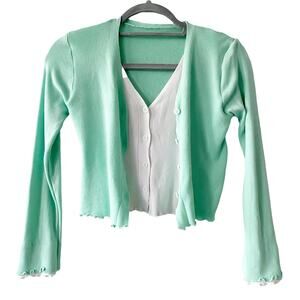 Womens Curly Hem Double Button Front Cropped Cardigan Sweater