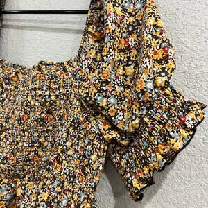 Women's Curvy Fall Floral Smocked Square Neck Peplum Blouse 1XL