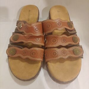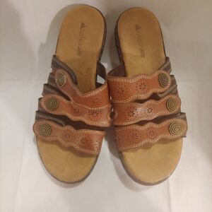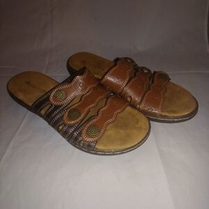 Women's Cushionaire Birdie Low Heel Slide Sandals Brown adjustable 6.5 M