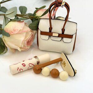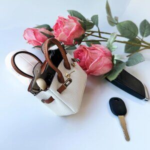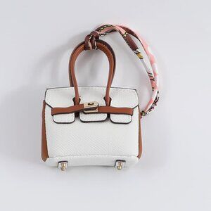 Women's Cute Mini Leather Key Chain Charm Clothing Pocket Off White Tote Bag