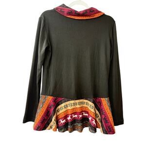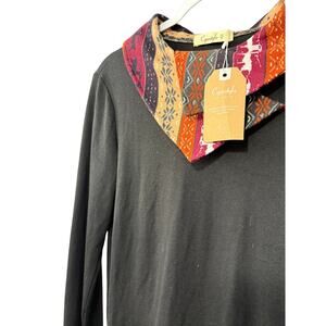 Women's Cyanstyle Size S Small Black Blouse Long Sleeves Tribal Pattern New NWT